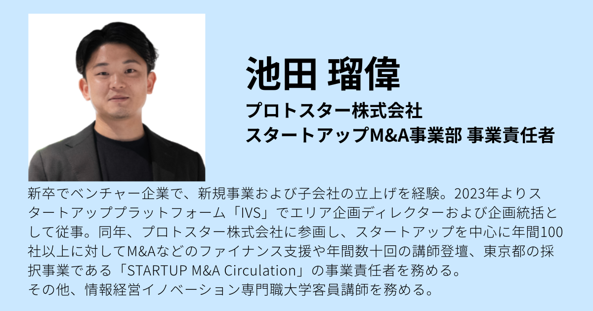 池田: プロトスター株式会社でM&Aの責任者を務めています。