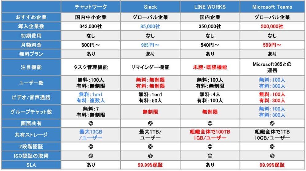 ビジネスチャットツール4社の詳細を比較表にまとめてみました!