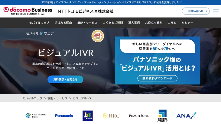 NTTドコモビジネスX株式会社のビジュアルIVRは、これまで音声自動応答(IVR)で行われていた音声案内を、Webサイトやモバイルアプリで可視化したシステムです。
