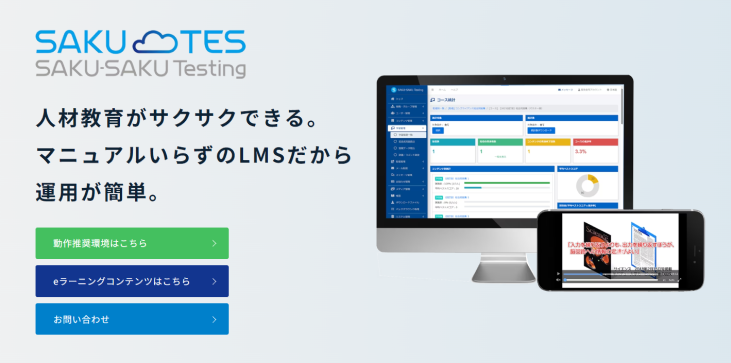 SAKU-SAKU Testing(サクテス)は、「知識定着を促すテスト型学習(テストエデュケーション)」を強みとするクラウド型eラーニングシステムです。