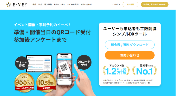 イーベ!はイベントの告知・拡散・決済・アフタフォローを一元管理できるサービスとなっています。