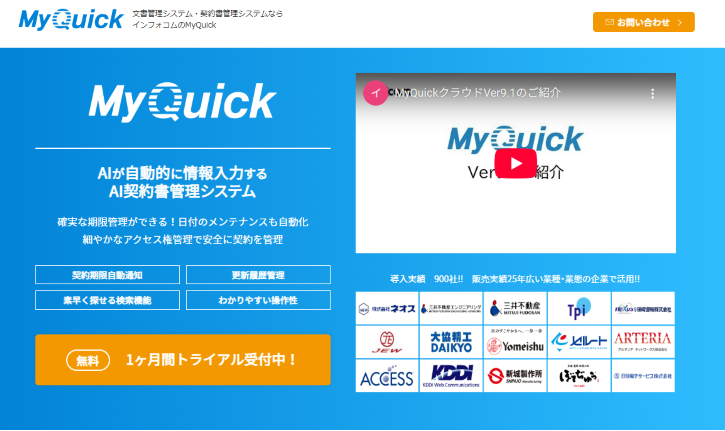 「MyQuickクラウド」は、ユーザー数無制限で月額2万円から利用開始できるため、コストを抑えて導入したい企業におすすめです。