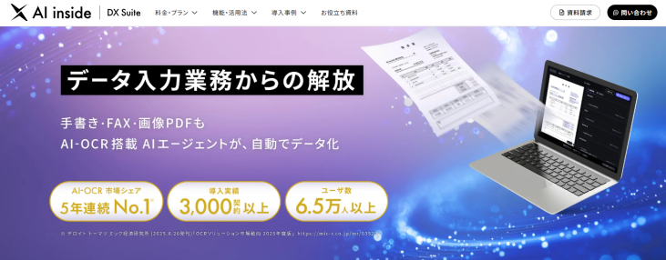 「DX Suite」は、市場シェアNo.1*を誇る高機能AI-OCRツールです。