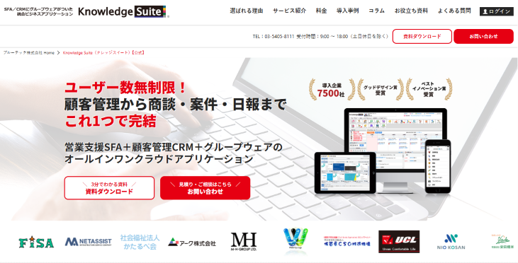 CRMの中でも特にSFA(営業支援)との連携を得意としているシステムで、顧客を発掘・管理するだけでなく、集めた顧客を売上につなげるための営業支援にも注力しています。