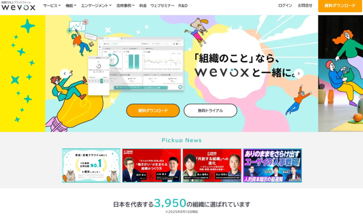 Wevoxは、社員のエンゲージメントや組織のカルチャーに注目した課題発見ができるサービスです。現場のチームやメンバーが中心になってマネジメントの改善活動を実践しやすくなるサービスになっています。