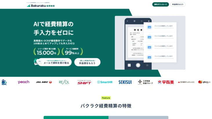 「バクラク経費精算」は、最大100枚の領収書を同時に数秒でデータ化できる経費精算システムです。