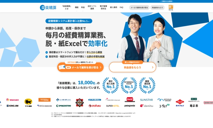 「楽楽精算」は、累計7,000社以上に導入されている国内導入数No.1の経費精算システムです。
