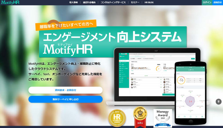 ミツカリエンゲージメントは離職防止に有効な適性検査サービス「ミツカリ」の機能のひとつで、従業員満足度やエンゲージメントに関する項目を調査できます。