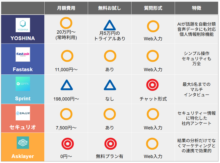 それぞれの特徴をまとめたので、比較検討する際の参考にしてください。