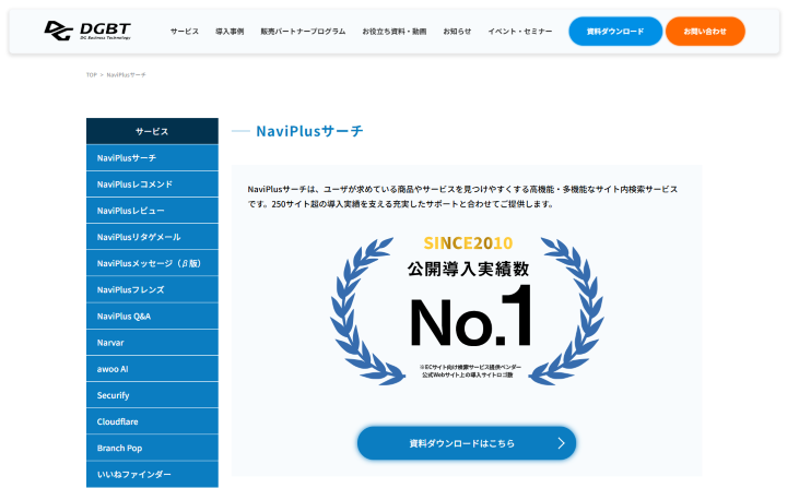 NaviPlusサーチ 含むサイト内検索ツールの資料を一括DL