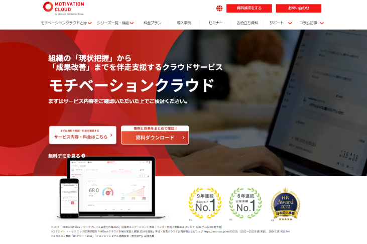 「モチベーションクラウド」は、心理学・行動経済学などを基盤としたコンサルティングで実績のあるリンクアンドモチベーションによって開発されたシステムです。