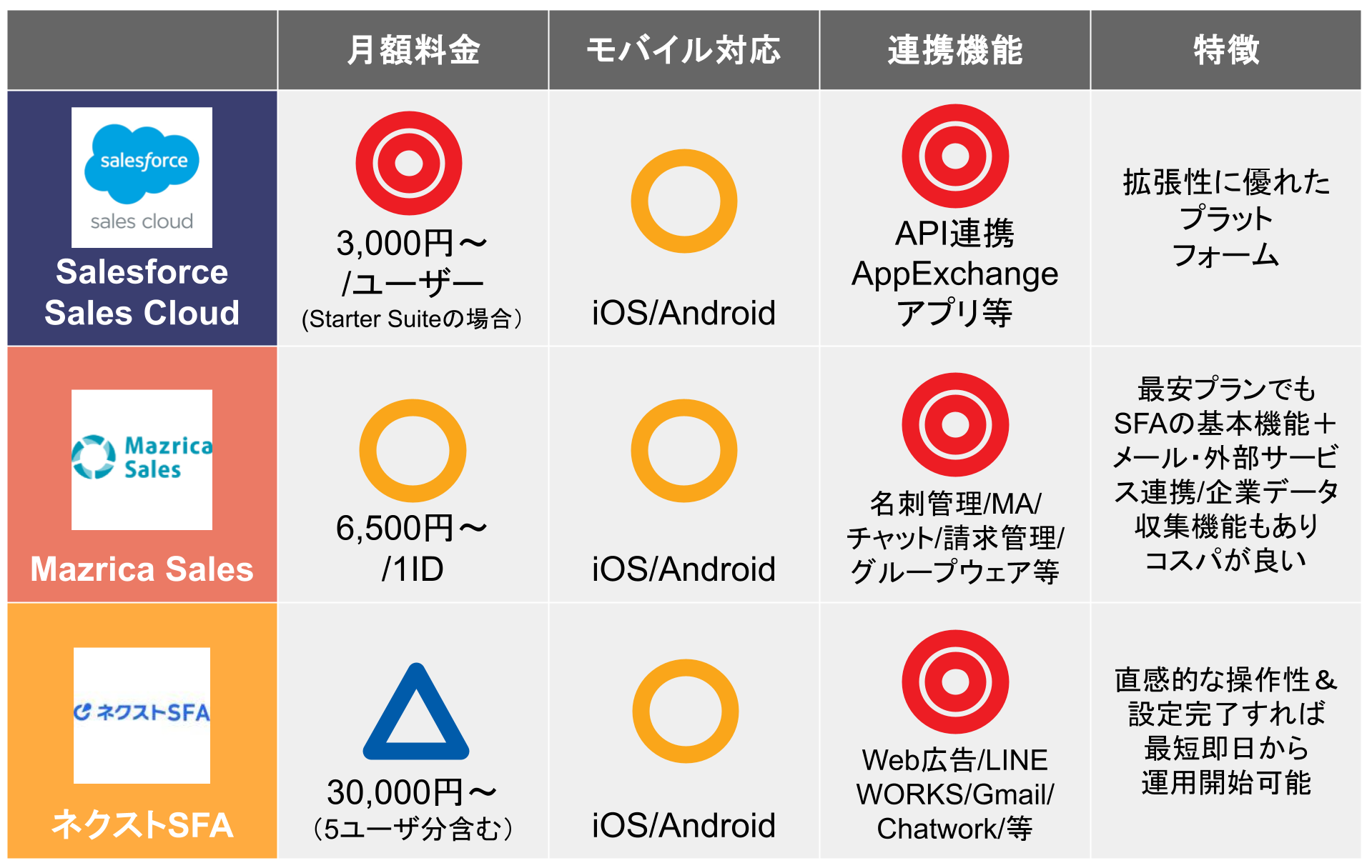 この記事で紹介する主要なSFAツールを比較表にしてまとめました。