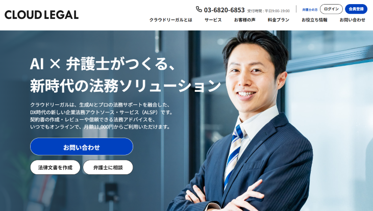 「クラウドリーガル」は、専門家の法務サポートと生成AIの融合によって、企業の法務・労務の課題を解決へと導くアウトソースサービスです。