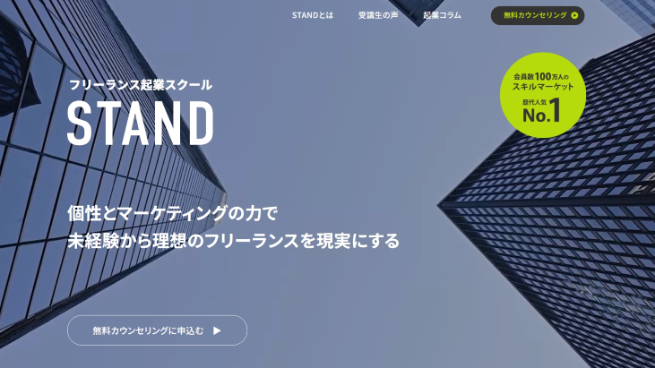 STANDは、フリーランスとして事業の立ち上げを目指す人々を対象とした起業スクールです。