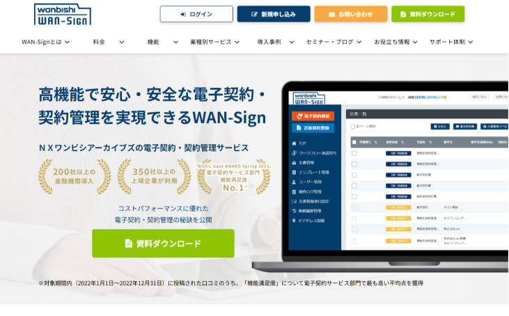たとえば電子契約サービスでは、契約締結に直接関わる電子署名・タイムスタンプ機能以外にも、過去の契約書を検索・管理する文書管理機能まで搭載されているものがあります。