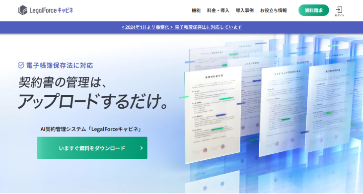 「株式会社LegalOn Technologies」が運営するLegalForce(リーガルフォース)は、契約書レビューに大きな強みを持っています。契約書ファイル(Word/PDF/画像PDFに対応)をアップロードするだけで、和英合計100類型以上(※2025年1月現在)の契約書について自動レビューでき、自社にとって不利な条文や欠落条項などを瞬時に洗い出しが可能です。