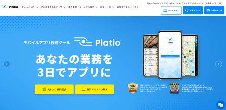 「Platio」は、初期費用0円、月額2万円台から利用できる業務用モバイルアプリ作成ツールです。