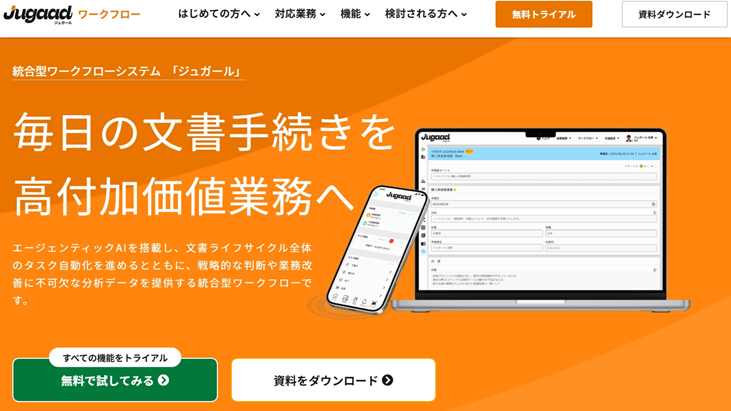 Jugaadには、「ワークフロー」「経費精算」の二つのサービスがあります。
