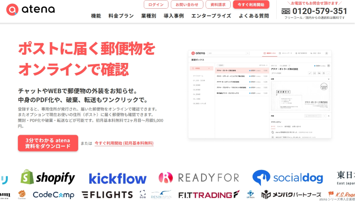 atenaのように取り扱い対象が郵便のみのサービスだと、郵便以外が多い企業には向いていません。