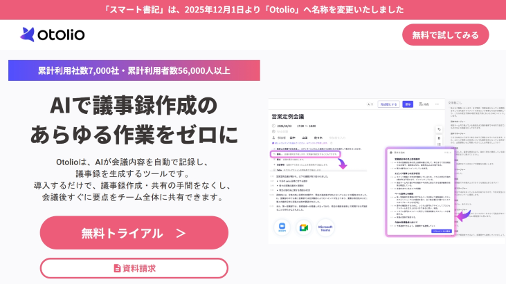 Otolioは、他の経営会議ツールとは特長の異なる、AIによる自動書き起こしに特化したツールです。