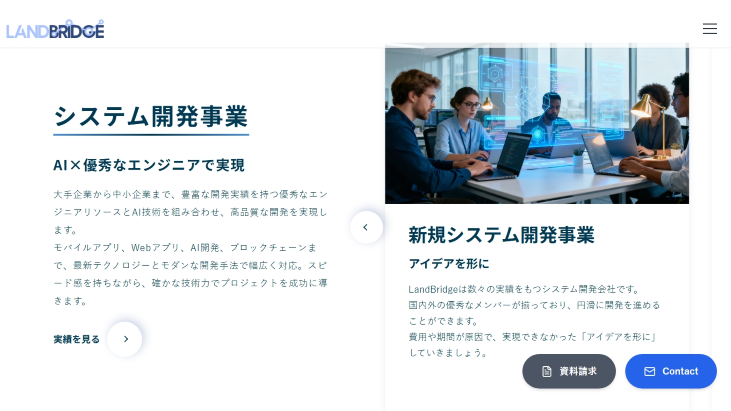LandBridgeは、AI駆動開発を強みとし、従来の5倍という驚異的なスピードでシステム開発を可能にします。