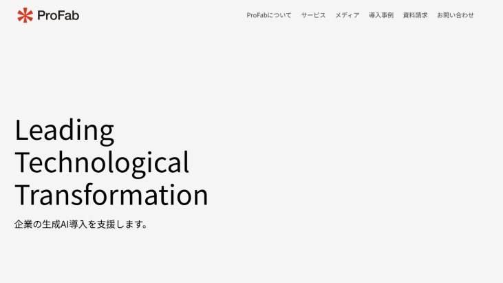 株式会社ProFabは経営コンサルティングで培った企画力と実践的なAI知見、さらに高いプロジェクトマネジメント力を兼ね備え、戦略立案から教育、開発、運用定着まで一貫したサポートを提供します。