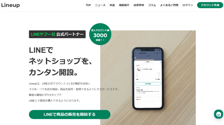 Lineup(ラインナップ)は、LINE公式アカウントと連携し、トーク画面上でスムーズに商品販売ができるECプラットフォームです。