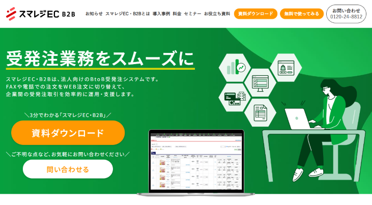 「スマレジEC・B2B(旧楽楽B2B)」は、受発注をEC化することで受注から発送までの工程を業務効率化するツールです。