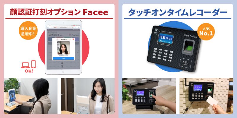特にFacee(顔認証打刻)は導入企業が急増しており、既に利用中のスマートフォンやタブレット、PCをタイムレコーダーとして活用できる点がポイントです。
