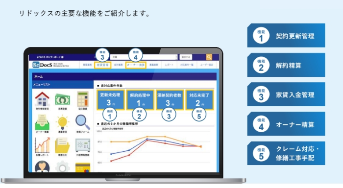 ReDocSはクラウド型の利点を最大限に活かした賃貸管理ソフトです。