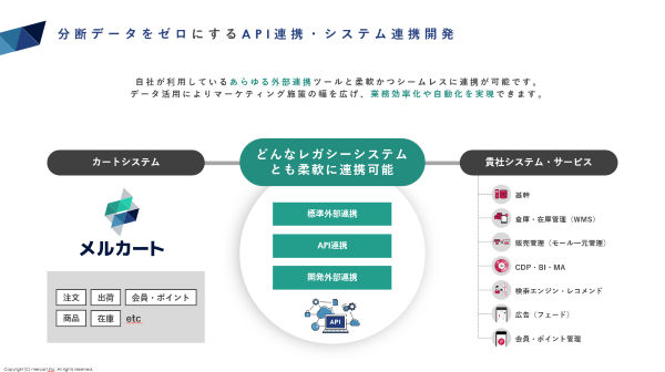 「メルカート」は、ECのリニューアルから新規構築まで、売上拡大と業務効率化を実現するECサイト構築サービスです。