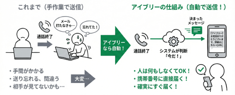 アイブリーでは、分岐設定機能とSMS自動送信機能を組み合わせることで、一定の条件に最適な案内をテキストで自動送信できます。