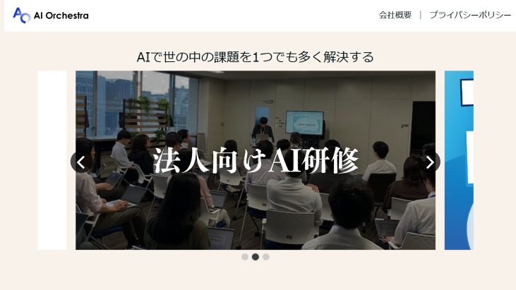 画像出典元:「法人向けAI研修 株式会社AI Orchestra」公式HP
