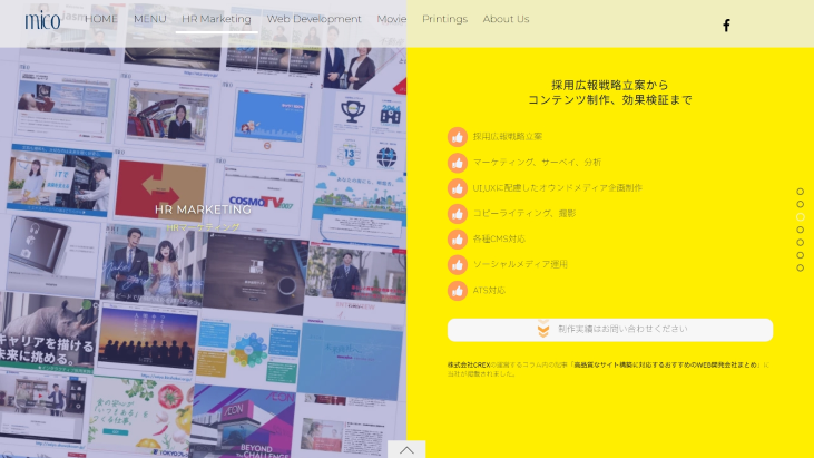 有限会社ミコのHRマーケティングは、企業の魅力を引き出す「クリエイティブ制作」と、戦略的な「マーケティング」を融合させた包括的な採用支援サービスです。