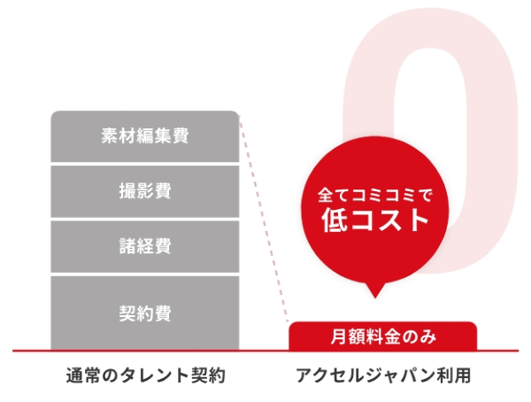 アクセルジャパンは初期費用0円、月額定額制で、有名人を自社の広告に起用できます。