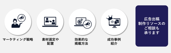 ターゲットに合わせた最適な素材配置の提案に加え、定期的なミーティングを通じて改善を繰り返すため、社内にノウハウがなくても着実な運用が可能です。