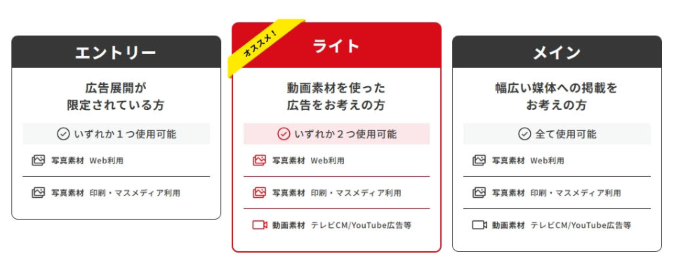 従来のタレント契約に比べコストを大幅に抑えつつ、300パターンの写真や20パターンの動画を利用でき、さらに専門チームによる戦略的な活用サポートも受けられます。