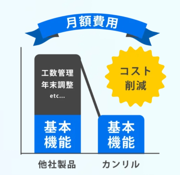 カンリルの特徴は、実務で本当に必要な機能だけを厳選した、従業員数1〜300名規模の企業向けのシンプルな製品設計です。