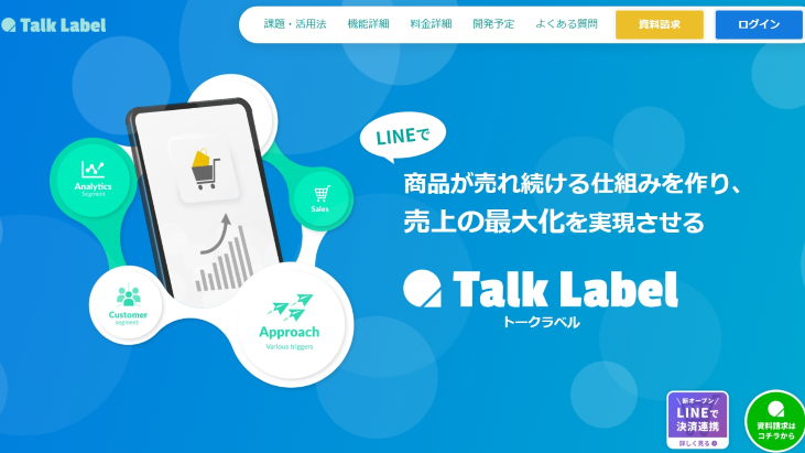 「TalkLabel」は、顧客ごとの行動や属性を自動でタグ管理し、一人ひとりに最適化したアプローチを支援するLINE拡張ツールです。