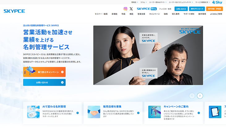 SKYPCEは、個人が保有する名刺情報を組織全体の資産として活用し、営業活動の効率化と成果向上を支援するサービスです。
